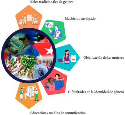 La presencia arraigada de estereotipos de género en la sociedad cubana (ver figura 1) es un fenómeno complejo que se extiende por diversas esferas de la vida cotidiana. Estos estereotipos son construcciones sociales y culturales que definen cómo se espera que se comporten y se relacionen las personas según su género, contribuyendo a la perpetuación de desigualdades de género y, en última instancia, facilitando un ambiente propicio para la violencia de género, incluida la violencia feminicida.