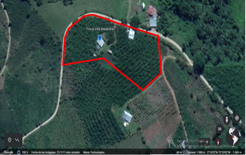 La investigación se llevó a cabo en la finca cafetera Villa Alejandra localizada en la vereda Miraflores del municipio de Garzón Huila. Está ubicada sobre los 1540 msnm, con temperaturas que varían entre los 15°C y los 23°C. La finca Villa Alejandra está a nombre del señor Ángel Gutiérrez Méndez, quien por más de 20 años se ha dedicada al cultivo de café, sin embargo, actualmente cuenta con problemas fitosanitarios de la broca, situación que ha provocado una baja producción dentro del municipio.