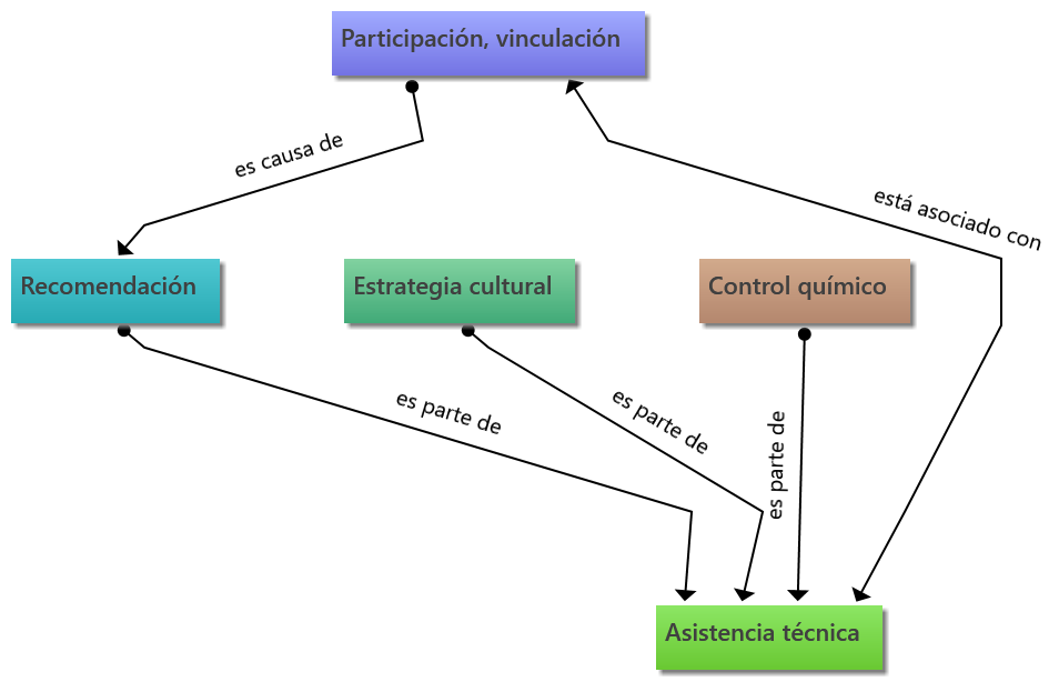 Por otra parte, cuando el productor manifiesta las palabras de “cooperativas”, “recomendación”, “comité”, “socio”, podemos inferir que estos métodos han sido producto de la transferencia de instituciones en las que el productor se encuentra afiliado y de este modo, ha decidido hacer uso de las estrategias sugeridas por estas instituciones, lo que concuerda con lo sugerido por García (2019), donde indica que la participación activa de los productores en los procesos que impliquen campañas para el control de broca, conlleva a la implementación de estrategias eficientes.
