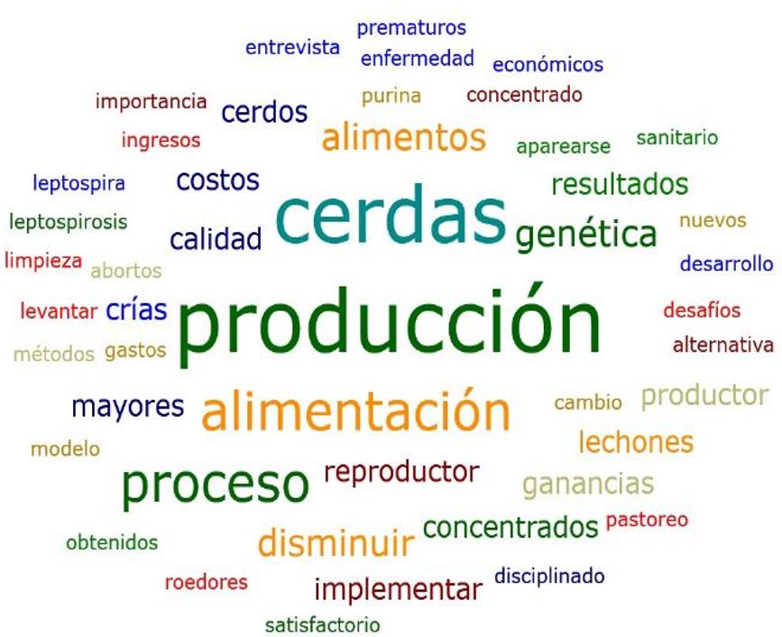 Los relatos de los entrevistados permitieron identificaron 53 códigos de interés, los cuales fueron agrupados en tres familias de análisis como sigue: económico, técnico-productivo y porcicultor, los principales relacionamientos y hallazgos, se presentan a continuación: