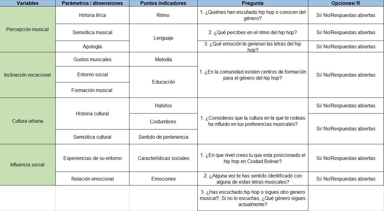 Perception of the musical genre of Hip Hop among youths aged 16 to 20 residing in the locality of Ciudad Bolívar, Bogotá, Colombia