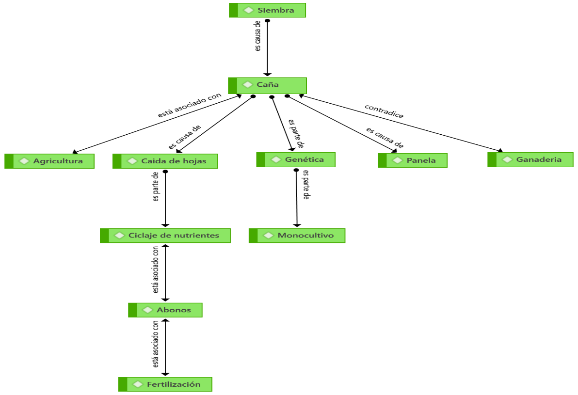 La Ganadería es el sistema productivo más frecuente en el contexto rural. No obstante, existe el interés en las comunidades rurales de implementar otras alternativas de agricultura y uso del suelo, tal es el caso de la siembra del cultivo de la caña, si bien lo reconoce el productor, este es un monocultivo, que a su juicio es un sistema que favorece el ciclaje de nutrientes a partir de la caída de las hojas que a su vez funciona como abono aportando al proceso de fertilización del suelo (Figura 3). En línea con lo anterior, López (2015), añade que la caña puede convivir con otros cultivos, aumentando el potencial mencionado por el entrevistado, pues la asociación es una estrategia para no solo recuperar el cultivo sino para asegurar parte de la alimentación animal.