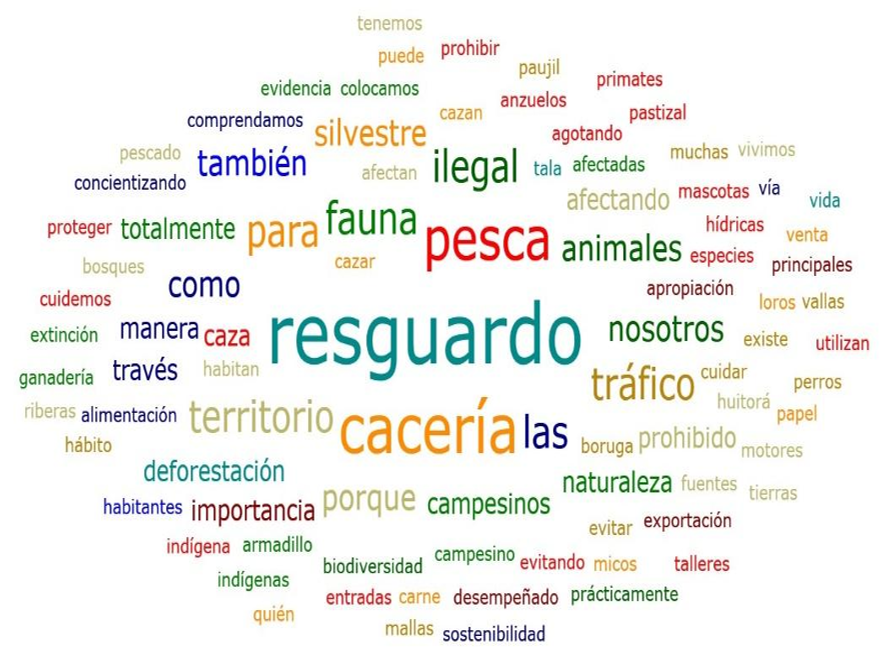 Figura 3. Nube de palabras cerca de tráfico y cacería ilegal, ocasionado afectación a los recursos naturales